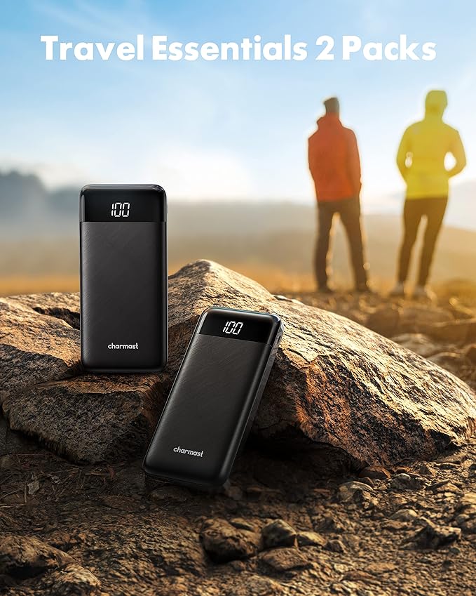 - đăSlim, Accurate Percentage of Remaining Juiceă Slim, dimmension is 5.68''x2.63''x0.69'', weigh only 0.53lb, portability just like a lighter cell phone, easily take it anywhere on the go. With digital led display, no more hassle of guessing the remaining battery and you can recharge battery pack in time conveniently. When friends devices or family gadgets needed to stay powered up, these Charmast 2-Pack Portable Chargers with builts in cables will make a wonderful function.
