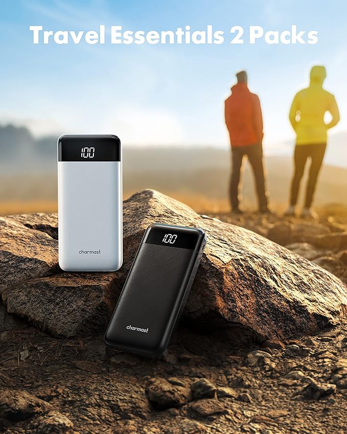 - đăSlim, Accurate Percentage of Remaining Juiceă Slim, dimmension is 5.68''x2.63''x0.69'', weigh only 0.53lb, portability just like a lighter cell phone, easily take it anywhere on the go. With digital led display, no more hassle of guessing the remaining battery and you can recharge battery pack in time conveniently. When friends devices or family gadgets needed to stay powered up, these Charmast 2-Pack Portable Chargers with builts in cables will make a wonderful function.