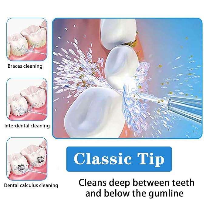 - Focused water column,0.6mm pulsewater column cleaning blindarea between teeth.