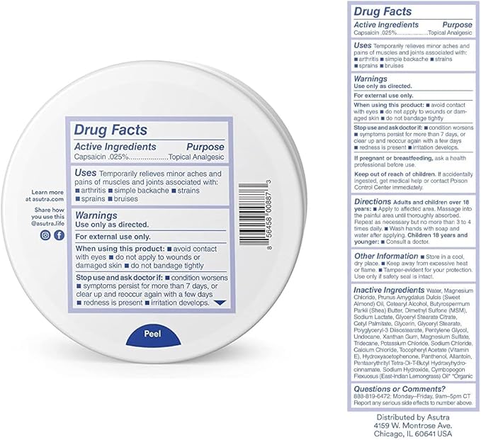 ASUTRA Magnesium Body Butter Lotion with Capsaicin, 7 oz - Warming Sensation, Temporary Relief from Muscle Discomfort and Soreness, Shea Butter & Almond Oil Moisturizer, Premium-Quality Magnesium