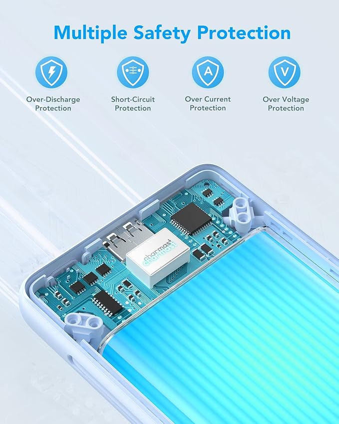 - 【Pocket-Sized Freedom】Passport Profile Design: Slim 5.95x2.76x0.72in, 228g. Fits in jeans pockets — 40% less bulk vs standard power banks with cables.