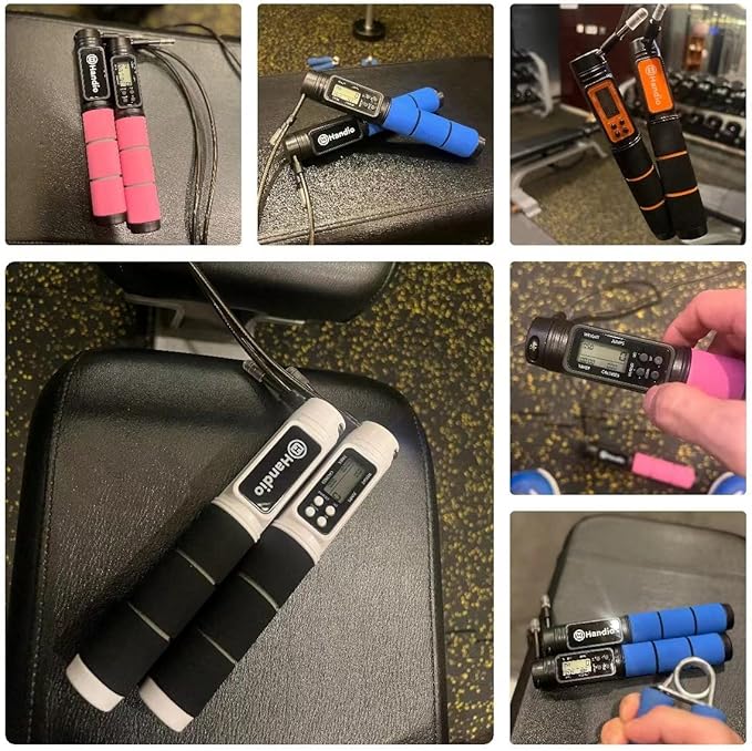 Jump Rope, H Handio Jump Rope with Counter, Workout Jumping Rope with Steel Ball Bearings, Adjustable Length Speed Skipping Rope for Men Women Kids Home Gym, Crossfit, Fitness Exercise
