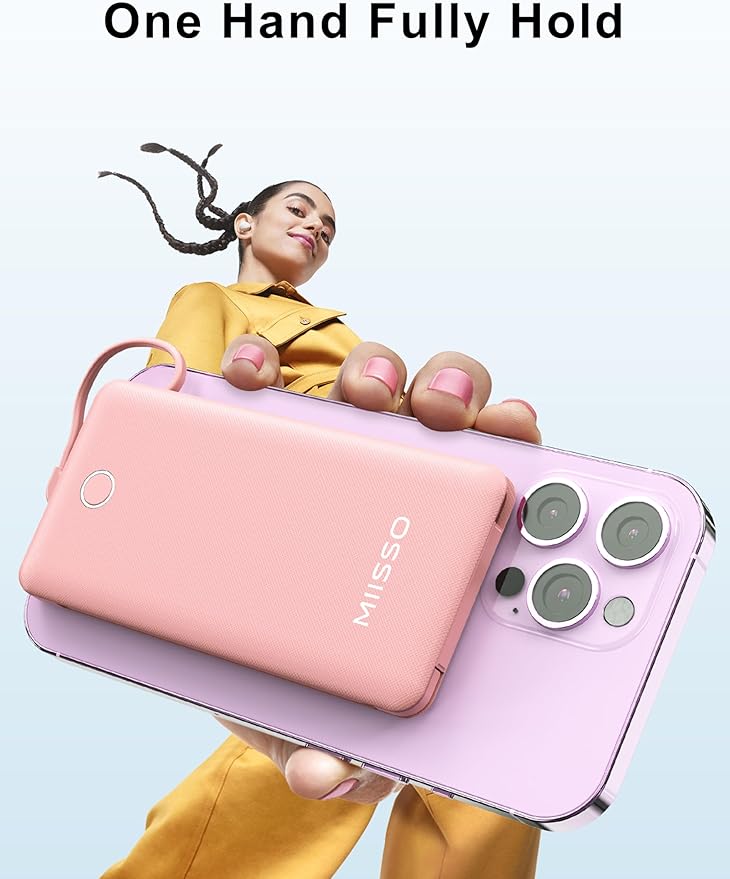 - High Capacity: Contains 10000mAh of power. Enough to provide over 2 entire replacement charge for iPhone 16, for iPhone 15 and Samsung Galaxy S24. 10000mAh can meet your daily electricity demand. And its body is slim, 5.59*2.75*0.57inch like a little phone that you can carry it in your handbag. It will be your most important partner daily. And when you are traveling or on a business trip that will be helpful
