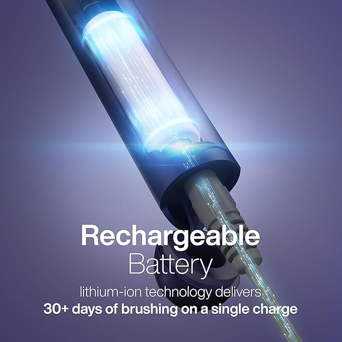 - Modern Technology: Icon features 2 brushing modes, and a built-in smart timer that signals every 30 seconds and shuts off after 2 minutes. Its lithium-ion battery holds a charge for 30+ days of brushing.