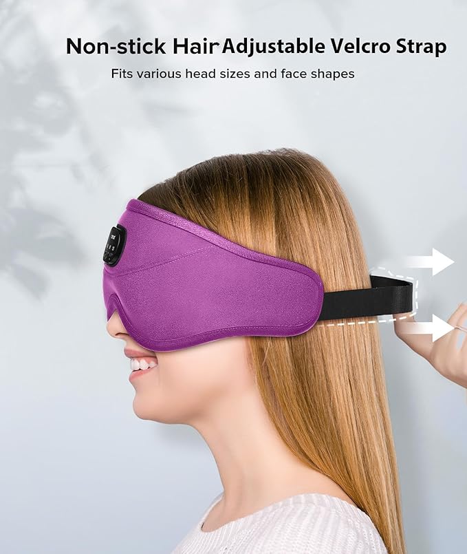 - Improved Comfort and Convenience: Our Sleep Mask provides 38 white noise options, eliminating the need for Bluetooth devices. We've upgraded the headband with increased elasticity to accommodate a wider range of head sizes (20''-27''). The widened Velcro ensures a secure fit to prevent slipping, while the upgraded Velcro design prevents hair from getting caught when removing the mask