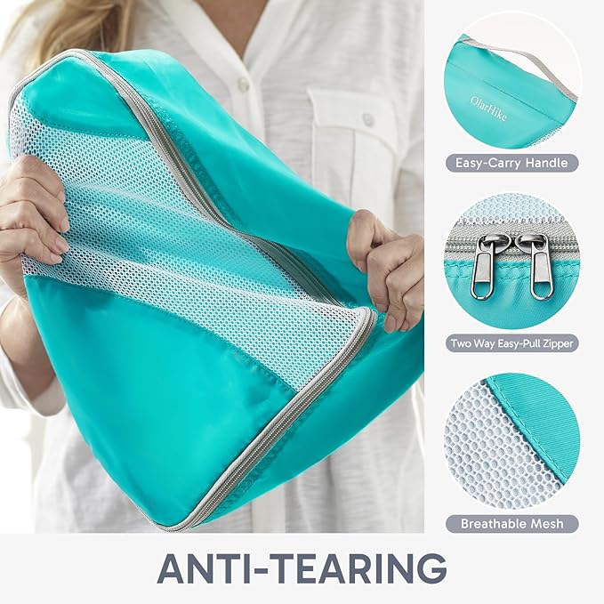 ALL INCLUDED 10 Set Durable Packing Cubes for Suitcases,OlarHike Essentials for Travel, UPGRADED Anti-Tear Stitching, NEW Improved Luggage Packing Organizers for Travel Accessories (Turquoise)