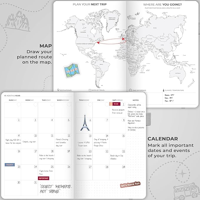 - TRIP WORTH BEING REMEMBERED: This travel log book journal helps you plan your trips in detail. You can use the travel diary journal to prepare lists of places to see and things to do, plan your itinerary and budget, and document memorable moments.
