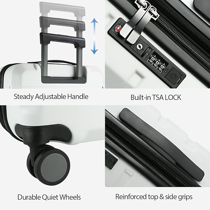 - 【High Quality Accessories】 Durable spinner wheels, which are composed of precision shaft center and thickened wheel skin, are very wear-resistant, quieter and have strong bearing capacity. They are applicable to different roads such as cobblestone road and carpet road. Smooth and durable reinforced explosion-proof zipper reverse coil prevents burst zipper. TSA-approved combination lock is safe and convenient. The ergonomic telescopic handle is adjustable in multiple layers.