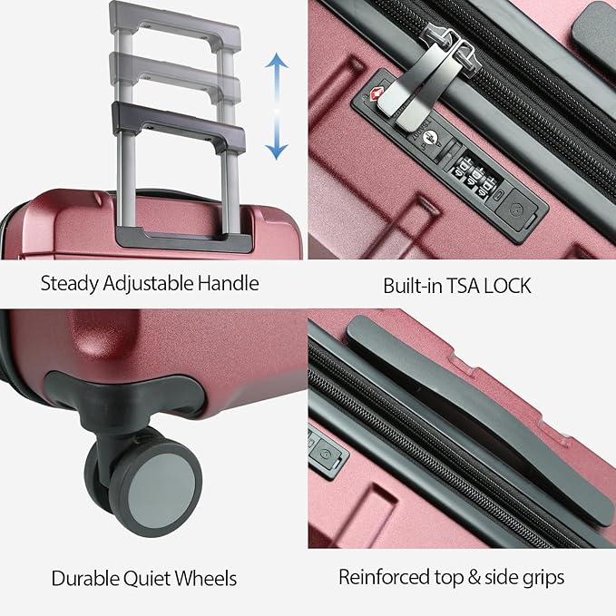 - 【High Quality Accessories】 Durable spinner wheels are composed of precision shaft center and thickened wheel skin, which are wear-resistant, quieter and have stronger bearing capacity. They are applicable to different roads such as cobblestone road and carpet road. Smooth and durable reinforced explosion-proof zipper reverse coil prevents burst zipper. TSA-approved combination lock is safe and convenient. The all aluminum telescopic handle is durable and adjustable in multiple layers.