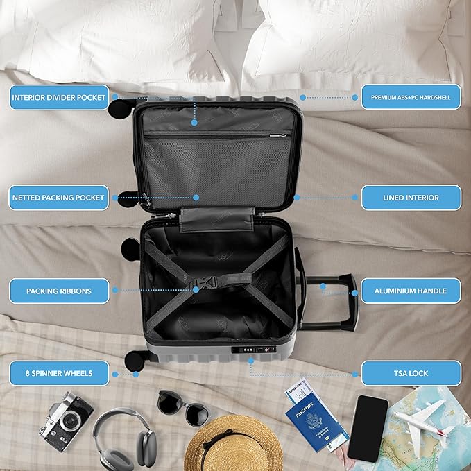 - AIRLINE COMPATIBILITY: The cabin size luggage in this set is compatible with over 100 airlines operating in the USA and around the globe. The perfect size for a secondary carry-on (Personal Item) for American, Delta, Spirit and Alaska. Carry-On with Jet Blue (Blue, Blue Extra, Blue Plus and Mint fares) and United (Premier member or a primary card member) approved Airlines. Tested using the airlines baggage sizer this cabin bag comfortably fits under your seat and will avoid airline charges.