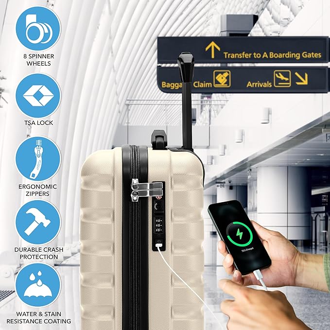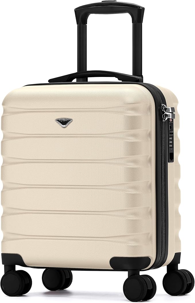 Carry On Suitcase Hardside Built In TSA Lock & USB Port Silent Double Spinner Wheels Maximum Underseat Carry-On Bag For American & United Approved Airlines( 18x14x8" ,Cream/Black )