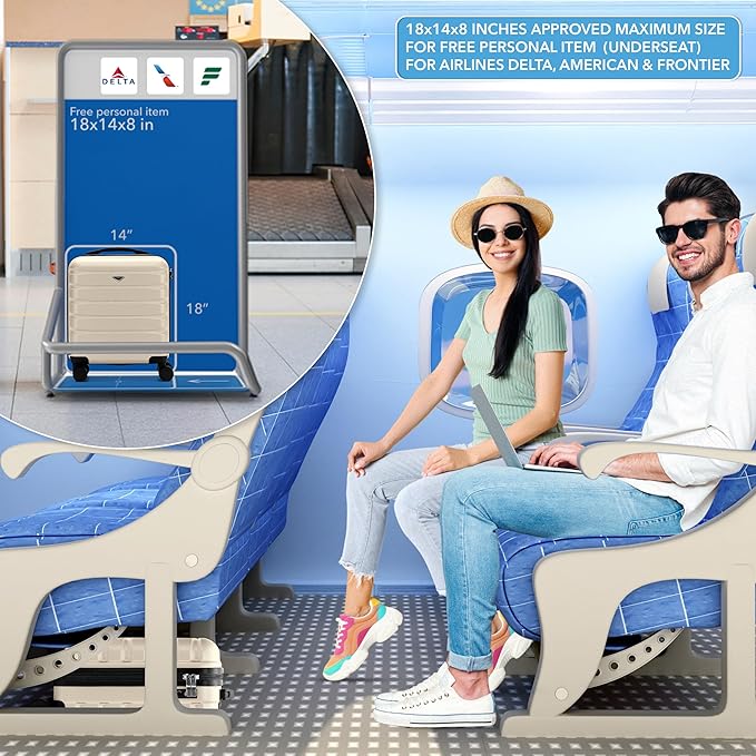 - AIRLINE COMPATIBILITY: The cabin size luggage in this set is compatible with over 100 airlines operating in the USA and around the globe. The perfect size for a secondary carry-on (Personal Item) for American, Delta, Spirit and Alaska. Carry-On with Jet Blue (Blue, Blue Extra, Blue Plus and Mint fares) and United (Premier member or a primary card member) approved Airlines. Tested using the airlines baggage sizer this cabin bag comfortably fits under your seat and will avoid airline charges.