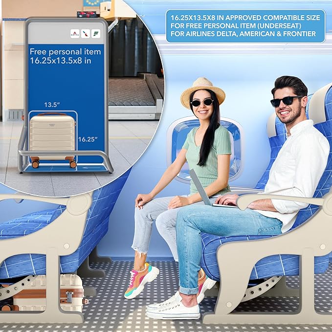 - AIRLINE COMPATIBILITY: The cabin size luggage in this set is compatible with over 100 airlines operating in the USA and around the globe. Including personal item carry-on for South west, American, Virgin, Delta & Frontier approved airlines. Tested using the airlines baggage sizer this cabin bag comfortably fits under your seat and will avoid airline charges. Get the most flexibility whether you're flying for business or jetting off on your next adventure holiday.