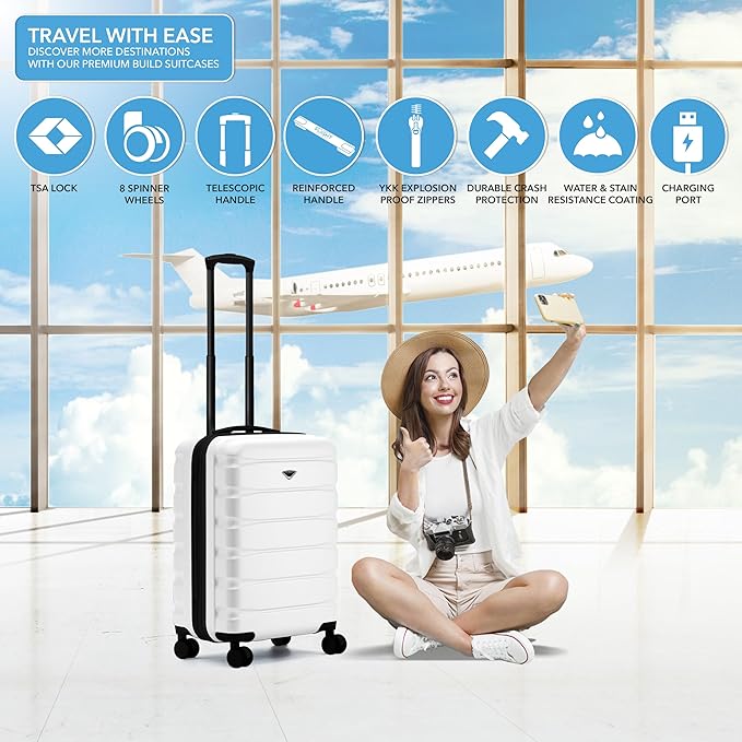 Carry On Suitcase Hardside TSA Lock & USB Port Silent Double Spinner Wheels Maximum Overhead Carry-On Bag Approved For Many Airlines( 22x18x10" ,White )