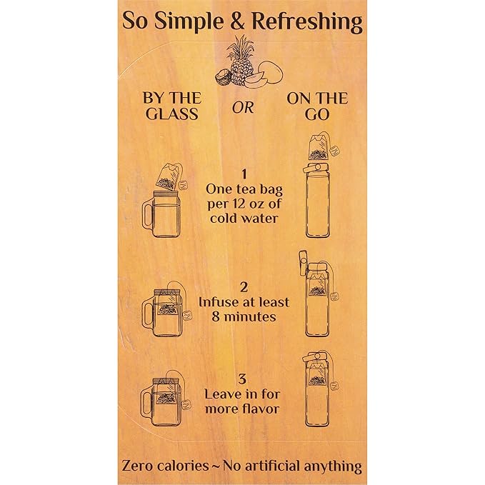 - Cold Water Infusion: Different from iced tea these beautiful botanicals slowly create light and refreshing flavored water; the simple-to-make herbal tea bags are gluten-free, zero calories, caffeine-free and have no artificial anything