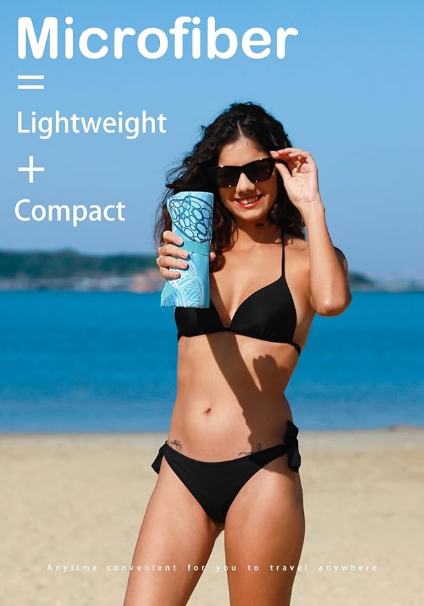 - LIGHTWEIGHT AND PORTABLE: The microfiber beach towels are made of ultra fine microfiber material that is incredibly thin and lightweight. They come with a convenient carrying strap that makes it easy to take them with you wherever you go. When folded, they are as small as a mobile phone and can easily fit in your pocket or beach bag