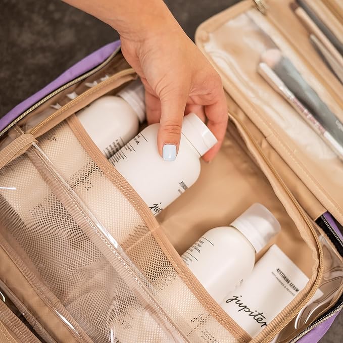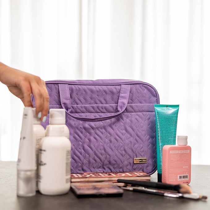 Carrywell |Not Made In China| Hanging Toiletry Travel Bag For Women, Makeup Organizer Case, Water-Resistant Cosmetic Bag For Full-size Containers, Toiletries (Purple, Medium)