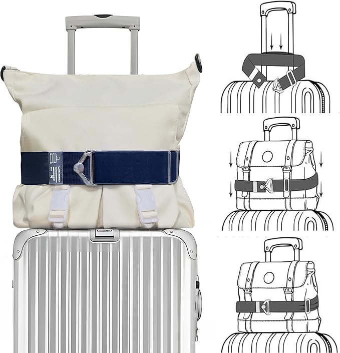 - 【Widely Used】The adjustable suitcase strap fits various sizes of suitcases and bags, can be extended up to 59 inches, the multi bag luggage strap has a rugged design that withstands the rigors of regular airline travel, and can be unfastened easily once you get on board.Luggage straps for suitcases, which are belts to attach bags to luggage, can hold backpacks, carry-on bags, gift bags, briefcases, jackets, neck pillows, and more