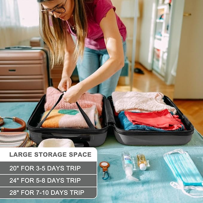 - 【CARRY ON LUGGAGE WITH LOCK + WHEELS】Side-mounted TSA LOCK with smooth YKK zipper act to deter theft, ensuring that only you or a TSA agent have easy access to your belongings when traveling, added security and convenience. Multi-directional spinner wheels to provide 360° effortless mobility and ease on traveler's wrist, re-engineered lightweight.