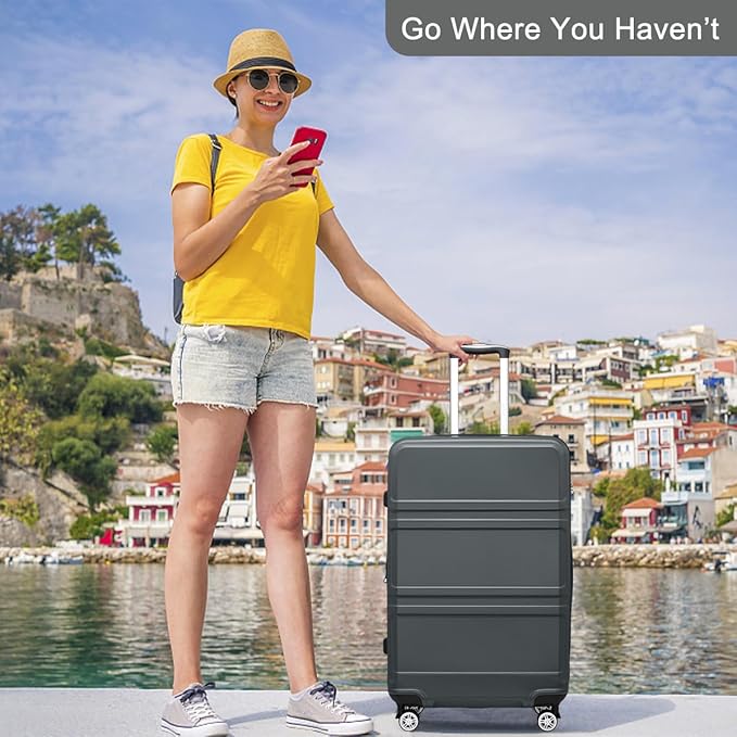 Kono 28 Inch Luggage Expandable Suitcase Lightweight with Spinner Wheels TSA Lock Hardside Large Checked Luggage Durable Rolling Suitcase Grey