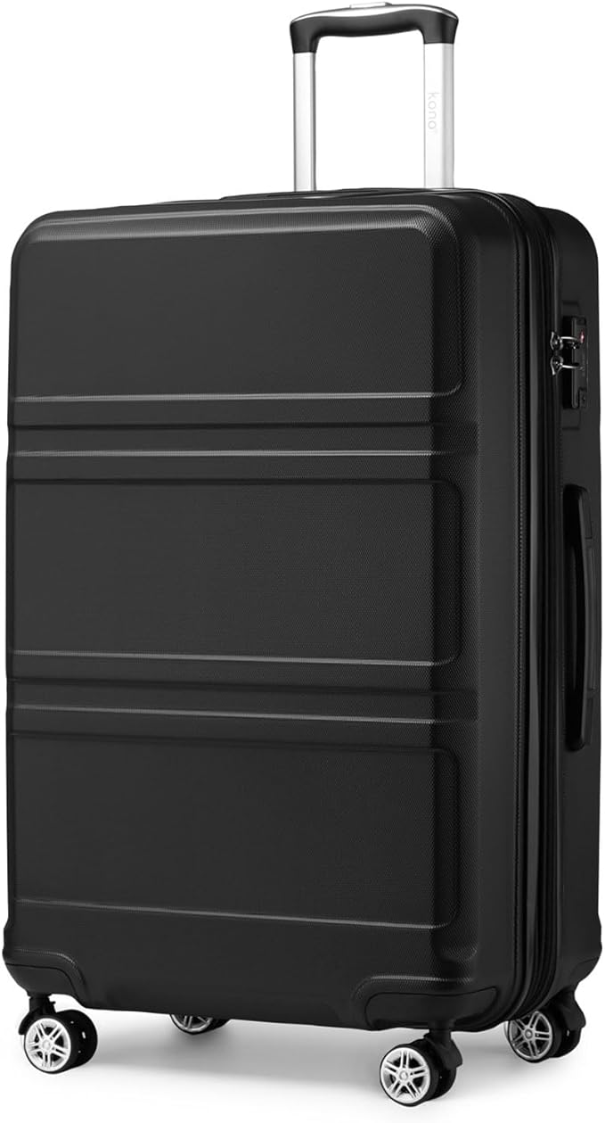 Kono 28 Inch Luggage Expandable Suitcase Lightweight with Spinner Wheels TSA Lock Hardside Large Checked Luggage Durable Rolling Suitcase Black