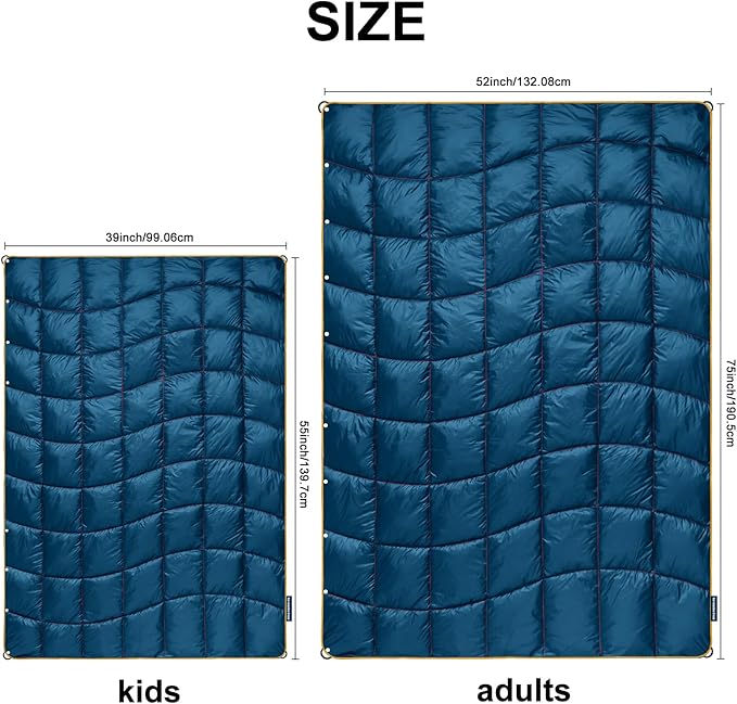 - Durable and Water-Resistant Blanket:The outer shell of this outdoor blanket is made of 20D rip-resistant nylon,With an upgraded coating with water repellency, dust and sand resistance, and pet hair.Stains are easy to wipe off, just wipe with a damp towel.It also locks in mildness against the cold, keeping you warm even in the cold wilderness.