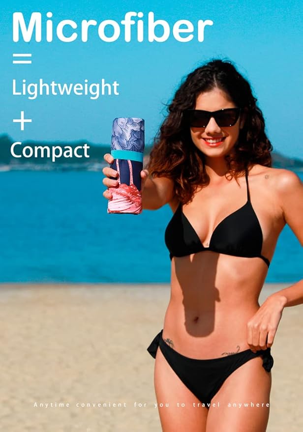 - LIGHTWEIGHT AND PORTABLE: The microfiber beach towels are made of ultra fine microfiber material that is incredibly thin and lightweight. They come with a convenient carrying strap that makes it easy to take them with you wherever you go. When folded, they are as small as a mobile phone and can easily fit in your pocket or beach bag