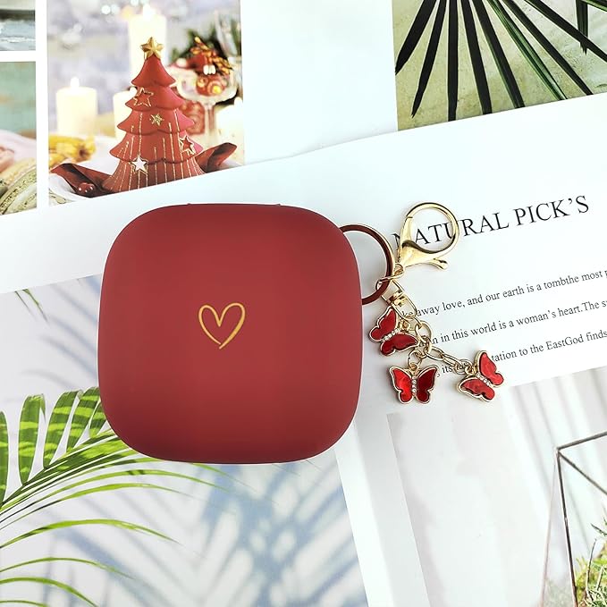 Compatible with Powerbeats Pro, Soft Silicone Case with Gold Heart Pattern for Powerbeats Pro Case with Cute Butterfly Keychain for Girls Women (Burgundy)