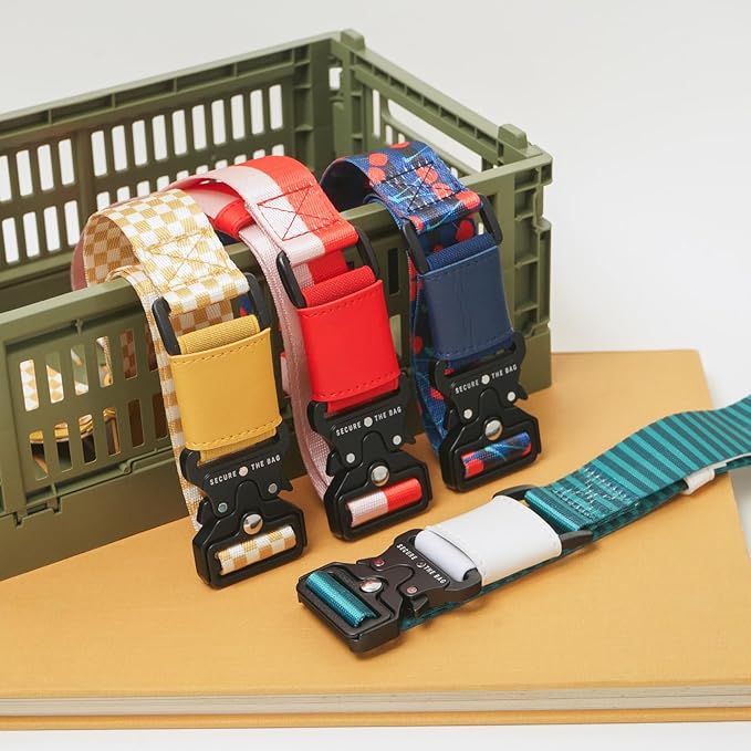 - STYLISH DESIGNS – A luggage bag strap doesn't have to be boring! Our luggage straps for carry on bags have chic vegan leather accents, herringbone patterned nylon, and come in various fun colors, making these luggage accessories fabulous gifts.