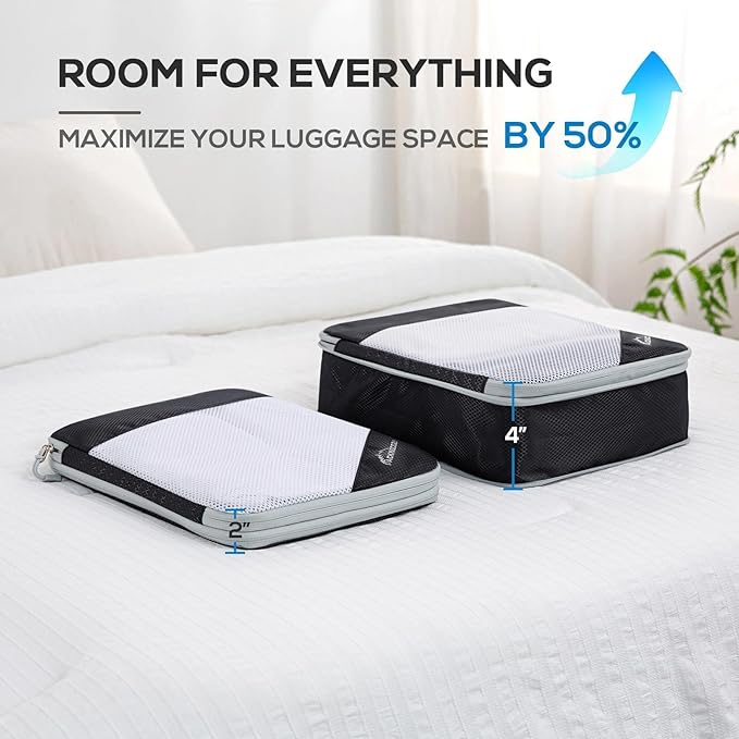 - Travel-Friendly: These compression packing cubes help optimize limited suitcase space, allowing you to pack more essentials. They also keep your items organized so you can quickly find what you need, making your trip more comfort