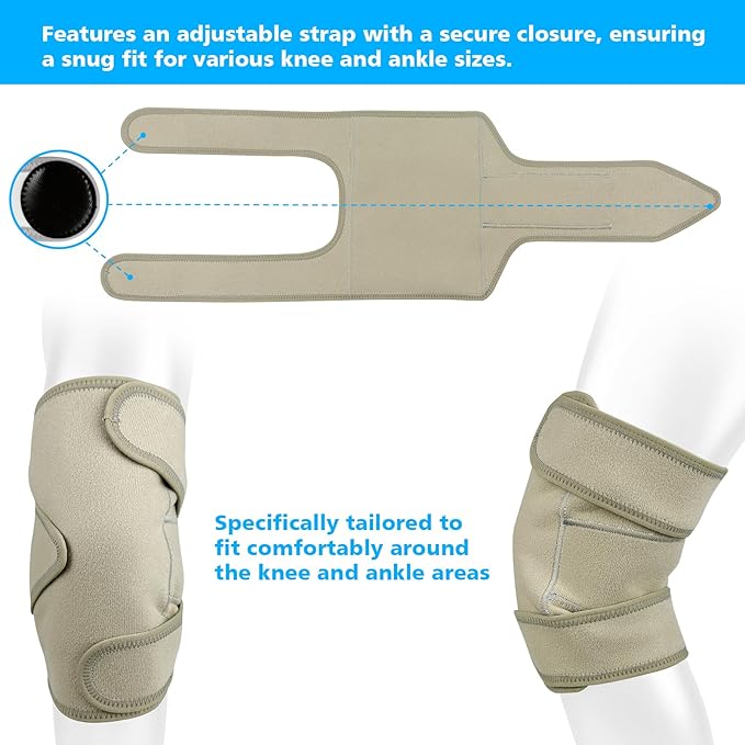 - Designed for Knee and Ankle - Specifically tailored to fit comfortably around the knee and ankle areas, ensuring maximum coverage and effectiveness. Features an adjustable strap with a secure closure, ensuring a snug fit for various knee and ankle sizes.