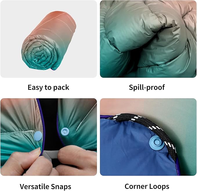 - Durable and Water-Resistant Blanket:The outer shell of this outdoor blanket is made of 20D rip-resistant nylon,With an upgraded coating with water repellency, dust and sand resistance, and pet hair.Stains are easy to wipe off, just wipe with a damp towel.It also locks in mildness against the cold, keeping you warm even in the cold wilderness.