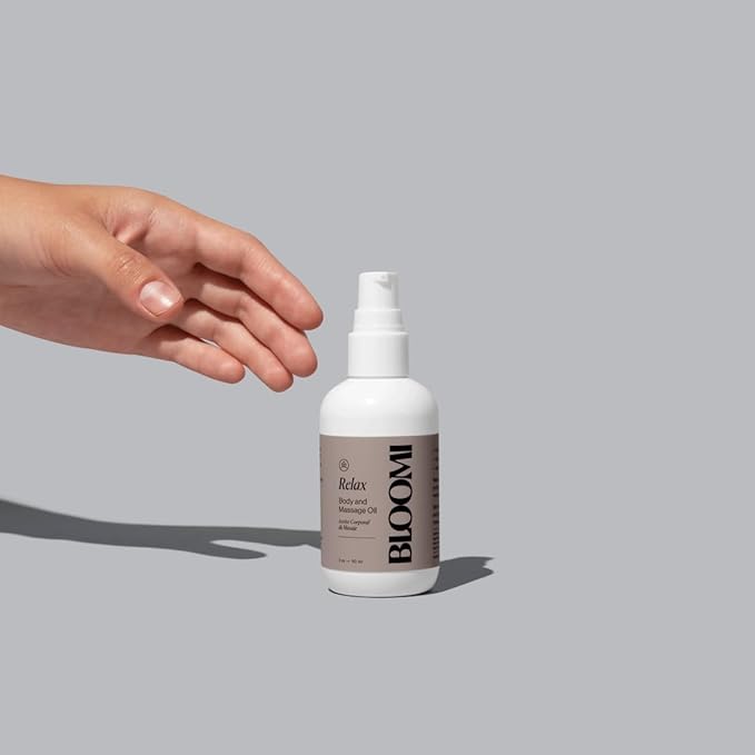 Bloomi Relax Body & Massage Oil, 3oz - Calming Lavender Oil for Relaxation, Stress Relief, Skin Hydration & Moisturizing Therapy, Ideal for Self Care (1)