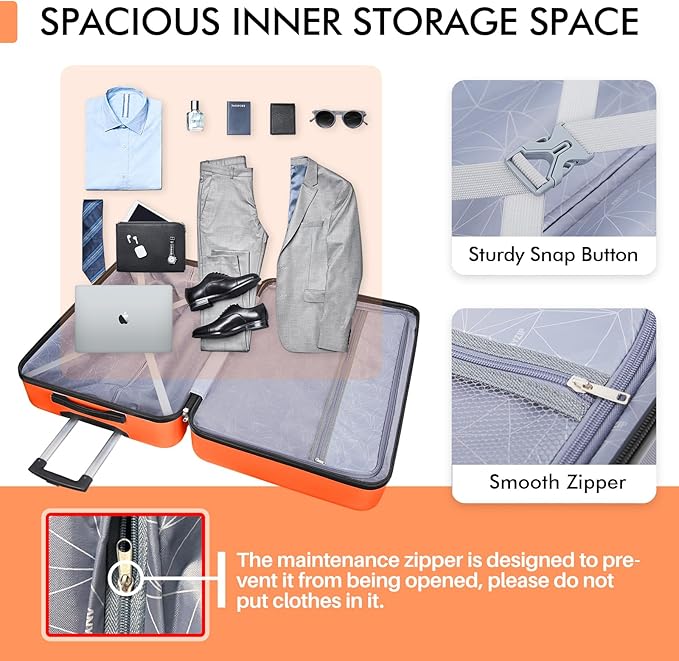 - [Larger storage space] We have adopted a more scientific structure design to maximize the use space in the box, and reasonable internal partitions make your luggage more tidy and can accommodate more.