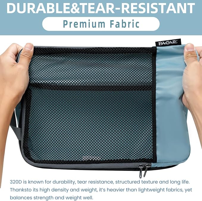 - PREMIUM UPGRADED 320D FABRIC:Smooth&Soft 320D Fabric Protects Your Clothes from Wrinkles and Stains.High Performance Feature Makes Sure this Packing Cubes can Bear High Density Wear and Tear during Traveling.Water-Repellent Feature Nicely Protect Your Clothes from Spill or Leaks.Easily Store Your Clothes and Protect Your Clothes from Stains and Wrinkles.
