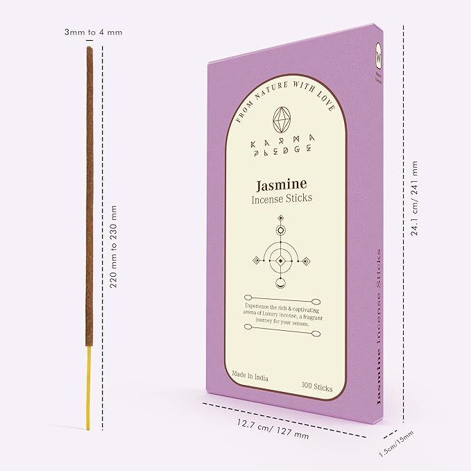 Jasmine Incense Sticks, Organic Hand Dipped 100 Sticks with Natural Herbs & Aromatic Ingredients, Burn Time 45 to 60 Minutes, Incense for Positivity, Yoga, Meditation, Relaxation, Spiritual Gift