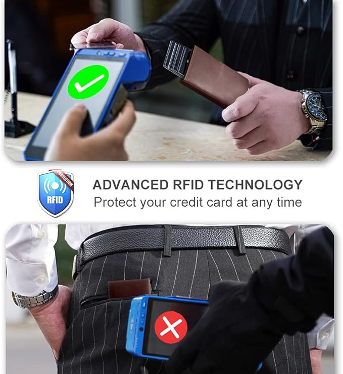 - [Minimalist and Smart]-Credit card holder package supports RFID cards and various types of cards. It can hold up to 8 cards, which is very suitable for business cards, credit cards, driving licenses, etc. It is simple and stylish and easy to carry.