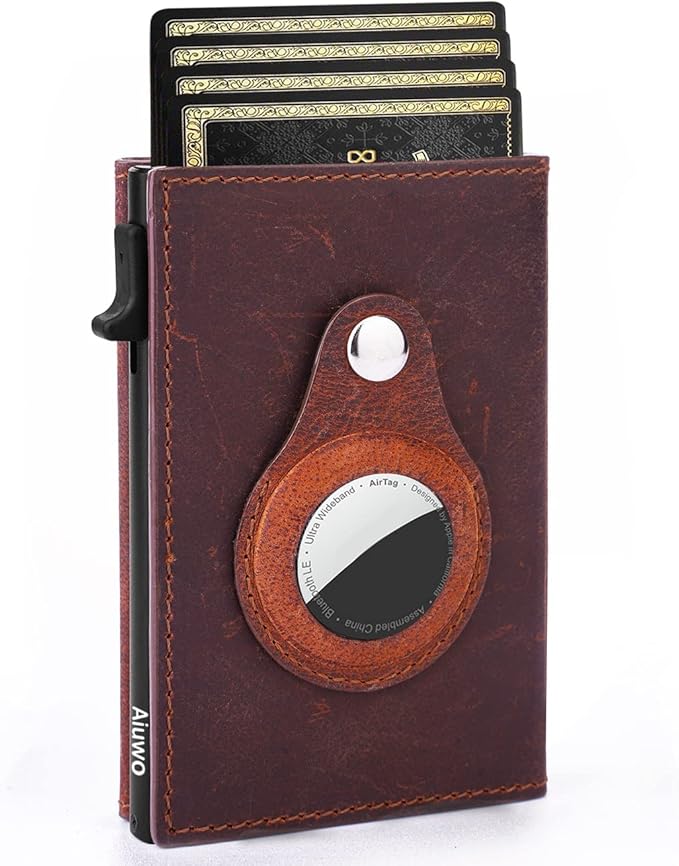 Aiuwo Airtag Wallet for Men,Mens Wallet Card Holder,Smart,Slim,Minimalist Wallet,Credit Cards Holder RFID Blocking Wallet (Airtag Wallet, Crazy Horse Brown)
