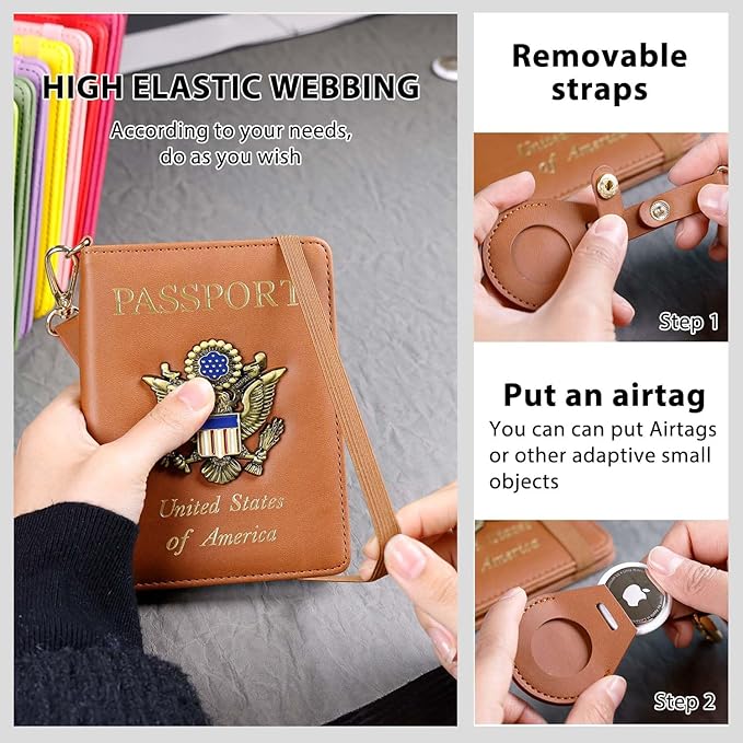 - AIRTAG TRACKING OR DIY:The Airtag Passport Holder Cover Wallet Case comes with a dedicated spot for the Airtag,The perfect combination of airtag and passport ensures you will never lose your passport wallet again.Or you can remove the protective cover of the airtag and decorate it with any pendant you like,such as the keychain, purse,luggage case or backpack.(DOESN'T INCLUDE THE AIRTAG)