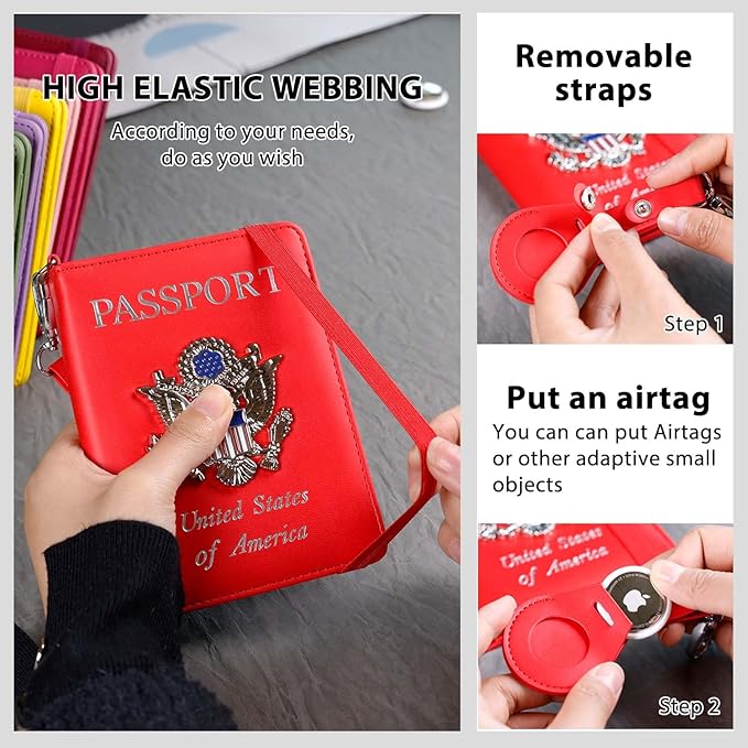 - AIRTAG TRACKING OR DIY:The Airtag Passport Holder Cover Wallet Case comes with a dedicated spot for the Airtag,The perfect combination of airtag and passport ensures you will never lose your passport wallet again.Or you can remove the protective cover of the airtag and decorate it with any pendant you like,such as the keychain, purse,luggage case or backpack.(DOESN'T INCLUDE THE AIRTAG)