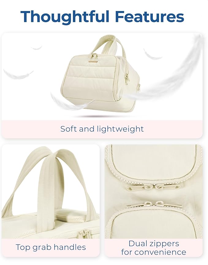 - Ultra Light and Soft Materials: Made of soft and luxurious Taslan fabric. This puffer toiletry bag feels like cotton candy, giving people a relaxed and comfortable atmosphere. Also a reliable, functional, and fashionable makeup bag. Efinitely an ideal Christmas gift for yourself, your family, and your friend