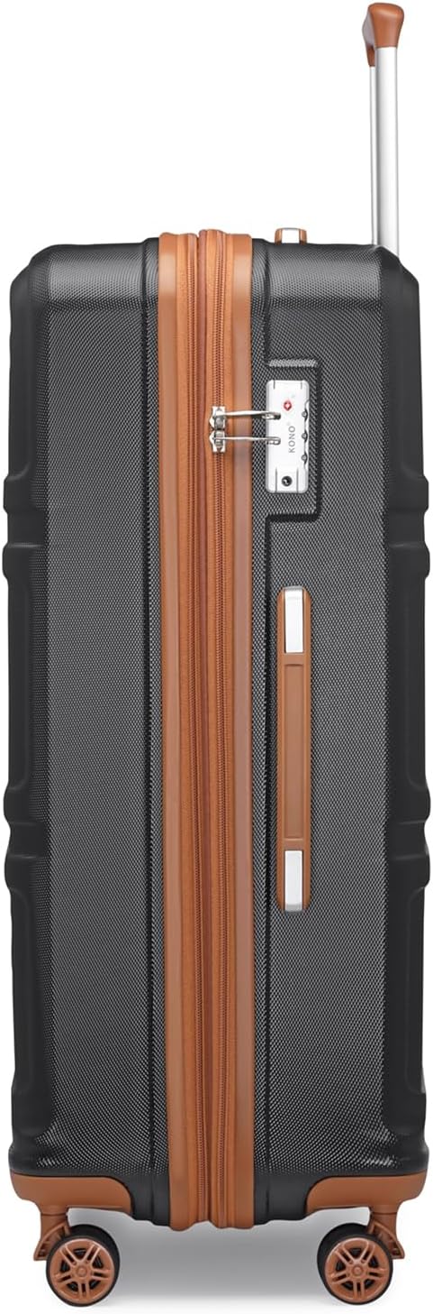 Kono 3 Piece Luggage Sets Expandable(only 28") Lightweight with Spinner Wheels TSA Lock Hardside Travel Rolling Suitcases 20in 24in 28in Carry on Black