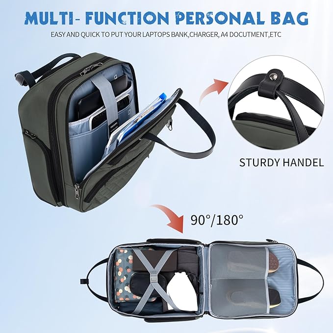 - HASSLE-FREE TRAVEL: Top with sturdy carry handle for easy lifting. Back with a smart Sleeve allows the bag to be placed over the handle of most upright luggage pieces.