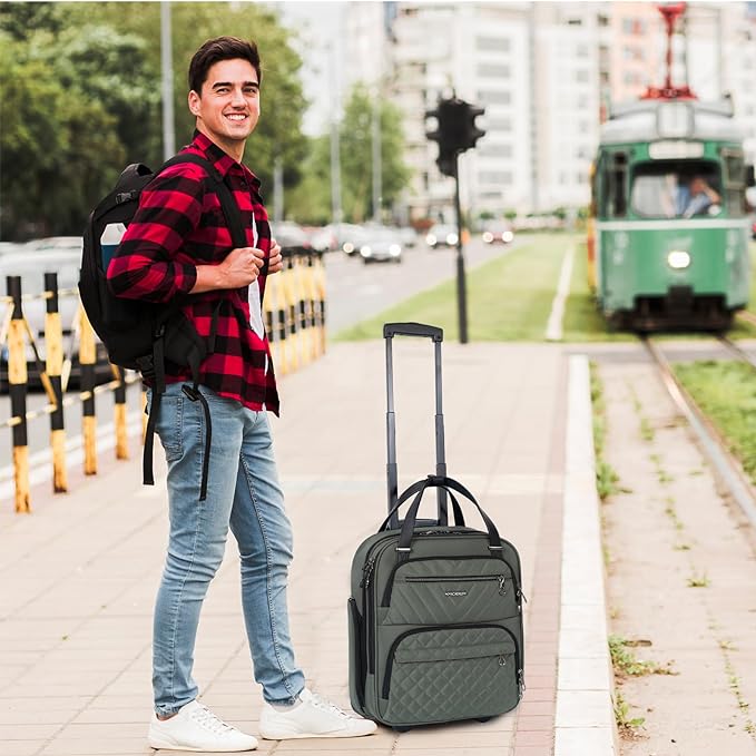 KROSER Carry On Underseat Multi-functional, 16-inch Underseater Lightweight Overnight Suitcase for Women, Army Green