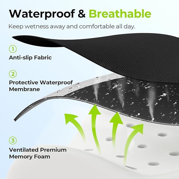 - Special Feature : Ergonomic Shape, Ventilated Memory Foam, Waterproof & Anti-slip Cover
