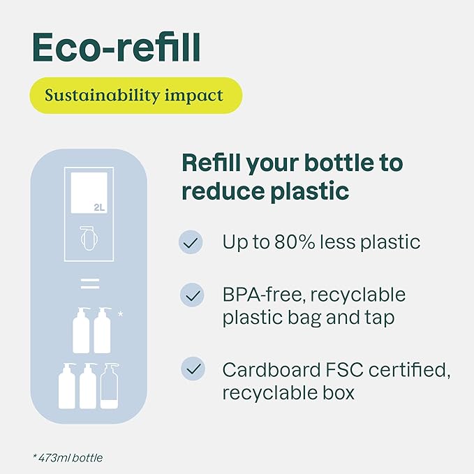 - VEGAN & SUSTAINABLE : This sensitive skin body wash is vegan and dermatologically tested. Packaged in a cardboard box, this body soap refill is a simple step toward a more responsible beauty routine.
