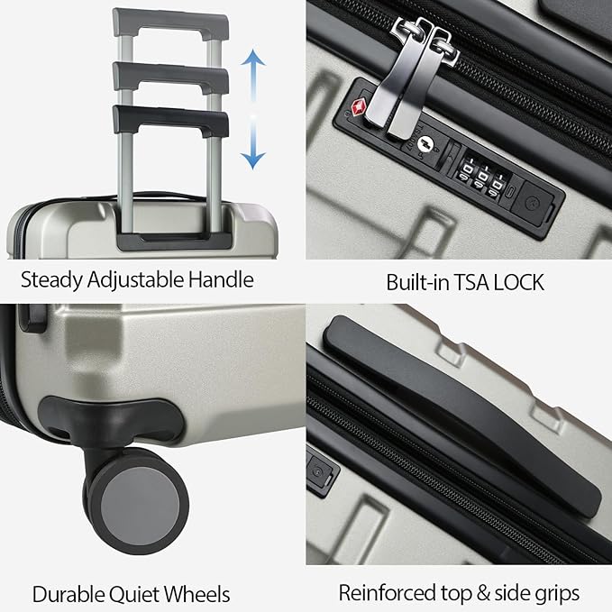 KROSER Hardside Expandable Carry On Luggage with Spinner Wheels & Built-in TSA Lock, Durable Suitcase Rolling Luggage with USB Port, Carry-On 20-Inch Champagne