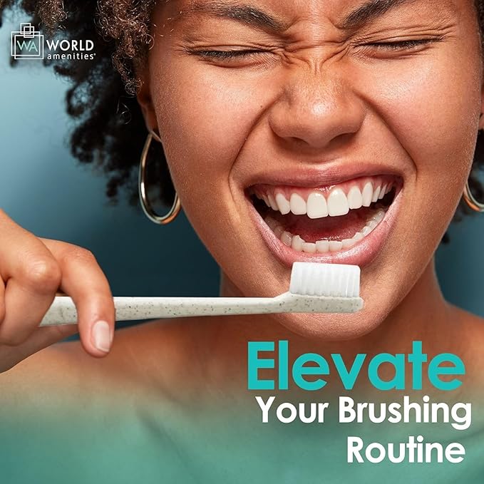 - ALL IN ONE KIT - World Amenities dental care kit delivers an AIO dental kit: Wheat Straw organic toothbrush, toothpaste, and kraft paper sachet packaging – your oral care essentials in one.