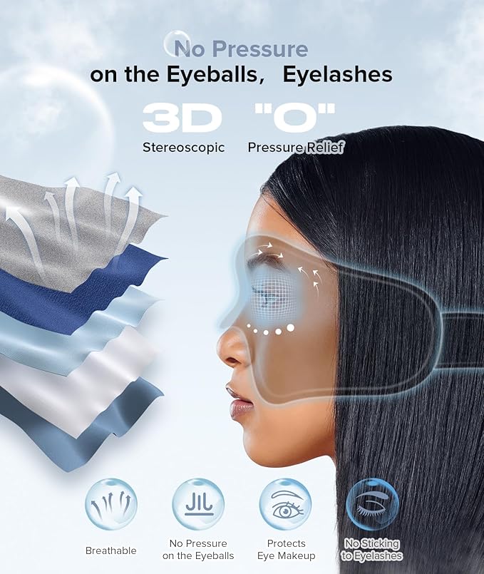 - 3D Zero-Pressure Eye Mask: Deep 3D eye contours provide ample space for your eyes, preventing any pressure on your eyeballs or eyelashes.Topoint has also designed a triangular area for your nasal bridge, ideal for those with nasal congestion. The mask fits comfortably on your face, allowing you to breathe comfortably