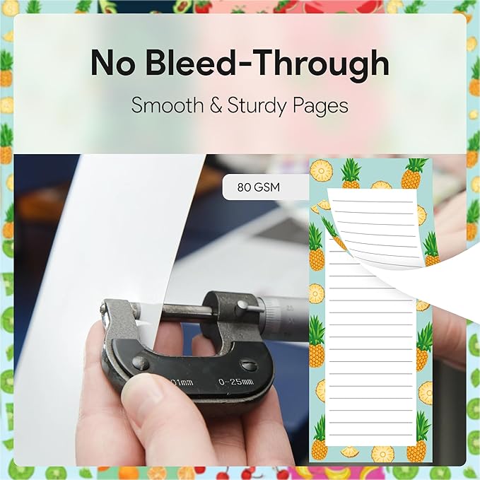 - BEAUTIFUL & REALISTIC FRUIT DESIGN - These 4 stick-and-go magnet note pads stand out because of their aesthetically designed borders, featuring a realistic and refreshing summer strawberry, a cute avocado, a juicy pineapples, mouthwatering cherry. Perfect for use as fridge note pad, grocery list note pad, to do list note pad